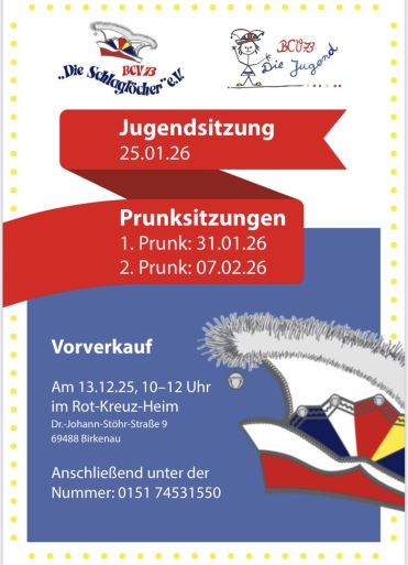 Der Kartenvorverkauf startet am 13.12.2025 um 10:00 - 12:00 Uhr im Rotkreuz Heim in Birkenau (Dr.-Johannes-Stöhr-Straße 9).